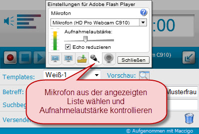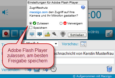 Loggen Sie sich mit Ihrem Kunden-Zugangsdaten auf www.maccigo.com ein, klicken Sie auf den Button "Aufnahme/Archiv" und setzen Sie zunächst - einmalig - die Einstellungen für den Adobe Flash Player: